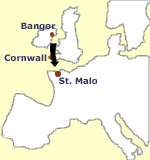 lugar onde ele desembarcou no continente, na baía de Saint Malo na