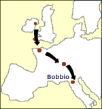 antes de encaminhar-se para Bobbio na Itália.”